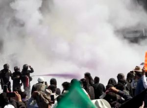Manifestantes entraram em confronto com a polícia em frente ao Palácio Nacional; polícia respondeu com bombas de fumaça e gás…